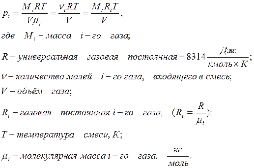 Для смеси идеальных газов по закону Дальтона давление смеси равно сумме парциальных давлений: