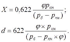 Обозначается эта величина и через Х, если обе массы выражены в кг. Из уравнения Клапейрона для сухого воздуха и пара можно получить выражения для Х и d в виде: