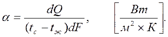 Таким образом, коэффициент теплоотдачи есть плотность теплового потока на поверхности тела, отнесенная к разности температур поверхности тела и окружающей среды. Численно это плотность теплового потока при температурном напоре равном единице. Конвекцию различают вынужденную и естественную. Познание процесса теплоотдачи сводится к определению зависимости