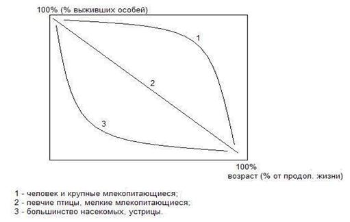 Для видов второй группы характерен примерно постоянный уровень смертности в течение всей жизни.