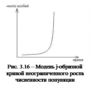 При неограниченных ресурсах и идеальных природных условиях виды реализуют максимальную рождаемость. Такой рост популяции начинается медленно и затем стремительно нарастает по экспоненте, то есть кривая роста популяции принимает J-образный вид: