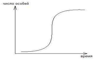 Рис. 3.17 – Ограничение численности популяции ёмкостью экосистемы по модели S-образного роста численности