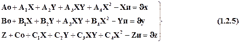 По координатам точек сети X,Y,Z и значениям коэффициентов Ai,Bi,Ci находят по формулам (1.2.4), исправленные за систематические искажения координаты точек сети Xи,Yи,Zи.