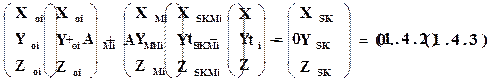 В уравнениях (1.2.4.2) Xи, Yи, Zи – геодезические координаты опорной точки в системе координат объекта.