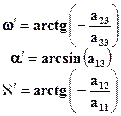 По значениям элементов матрицы А вычисляют значения угловых элементов внешнего ориентирования снимка: