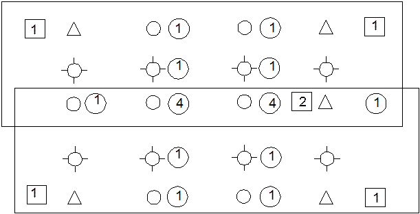 Для сети изображенной на рис.1.3.1 N=7*3=21, а М=3*14+3*8=42+24=68, так m=14 (две опорные точки расположенные в межмаршрутном перекрытии используются как связующие), а k=8 (две опорные точки измерены в двух соседних маршрутах).
