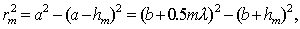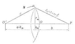 Приближённо, не принимая во внимание уменьшение интенсивности сферической волны с расстоянием, которое она проходит, в расчётах можно полагать, что величиной (5.9) определяется интенсивность волны, создаваемой каждой из зон Френеля, близкой к первой. Это является следствием равенства площадей зон Френеля, соответствующих различным значениям m. Действительно, принимая во внимание (рис. 5.13), находим площадь