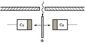 Согласно волновым представлениям энергия даже столь слабого излучения должна распределяться в пространстве равномерно влево и вправо. В этом случае левый и правый счетчики должны были срабатывать практически одновременно, а самописцы Л и П, связанные со счетчиками Сл и Сп, оставлять метки на движущейся ленте друг напротив друга.