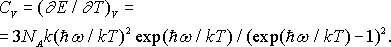 Модель Эйнштейна. В модели Эйнштейна считают, что атомы колеблются независимо друг от друга и что частоты колебаний всех атомов одинаковы. В таком случае для подсчета внутренней энергии кристалла, содержащего