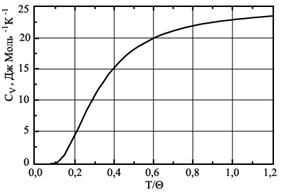 Модель дает хорошее совпадение с экспериментом для температур выше 50-100 К (не слишком близких к абсолютному нулю). График зависимости