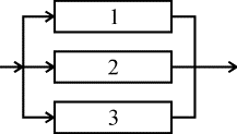 На рис. 3.8 представлено параллельное соединение элементов 1, 2, 3. Это означает, что устройство, состоящее из этих элементов, переходит в состояние отказа после отказа всех элементов при условии, что все элементы системы находятся под нагрузкой, а отказы элементов статистически независимы.