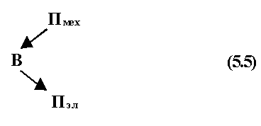 Пример: Генератор электрического тока (В) преобразует вращательное поле (П1) механических сил которое может быть изображено и как (Пмех), в электрическое поле (П2) или (Пэл). Веполь будет иметь вид (5.5).