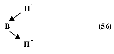 Пример: Трансформатор электрического тока (В) преобразует переменный электрический ток напряжением одного уровня (П1) в переменный электрический ток напряжением другого уровня (П2). В связи с тем, что вид поля качественно не меняется, поля можно изобразить как П', П'', тогда схема веполя по формуле (5.4) можно представить также в виде (5.6)