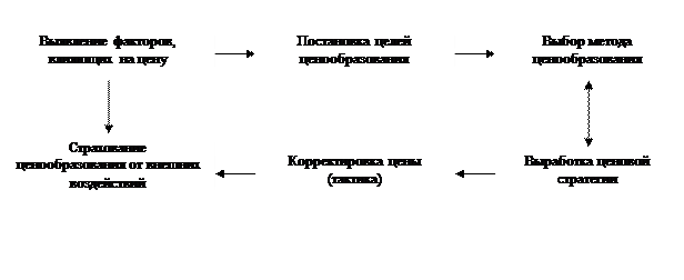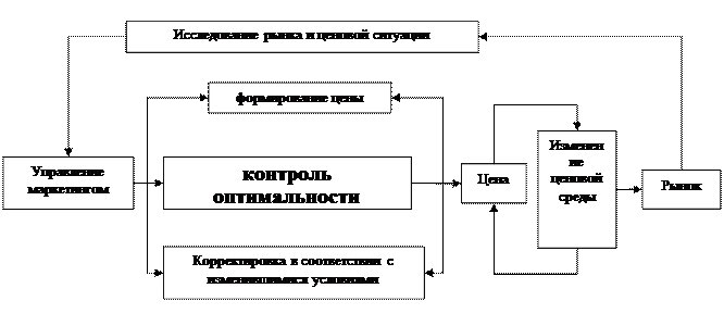 Схематично место цены и ценообразования в коммерции изображено на рис.5. Эта система, начинающаяся с исследования ценовой ситуации на рынке, не завершается выпуском на рынок правильно назначенной цены. Эта цена сама меняет рыночные условия и реагирует на их изменения, что требует постоянного наблюдения и анализа.