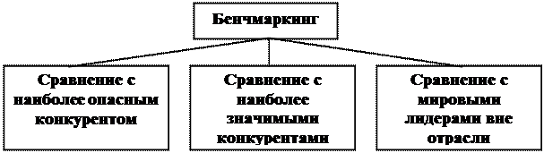 Первый подход состоит в сравнении с наиболее опасным конкурентом, второй – в одновременном сравнении с наиболее значимыми конкурентами в данной отрасли, третий – в поиске лидеров вне отрасли.