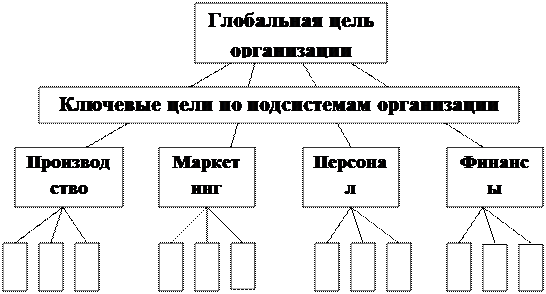 Управление по целям – это управление достижением целей, сформулированных для себя субъектами на основе плановых заданий. Основополагающим принципом является то, что цели предприятия могут быть достигнуты лишь тогда, когда они распределены между всеми отдельными иерархическими уровнями и между работниками этих уровней.