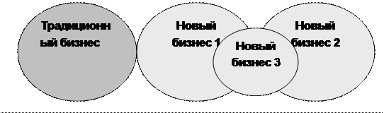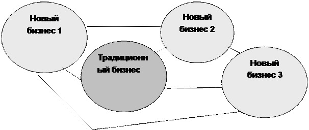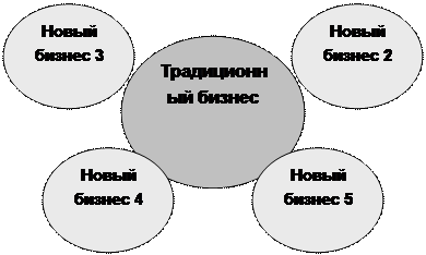 · стратегия центрированной диверсификации, заключающаяся в создании новых бизнесов вокруг традиционного бизнеса, выступающих по отношению к нему как некоторое дополнение (рис. 8.2.);