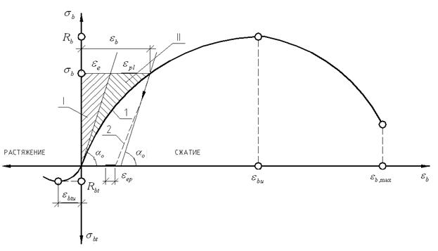 Если образец загружать по этапам и замерять деформации дважды – сразу после приложения нагрузки и через некоторое время после выдержки под нагрузкой, получим ступенчатую линию (рис. 8). При достаточном числе загружений, ступенчатая линия зависимости σb – εb может быть заменена плавной кривой. Таком образом, упругие деформации бетона соответствуют лишь мгновенной скорости загружения образца, а неупругие развиваются во времени.