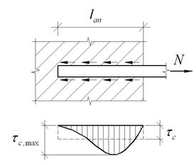 . В расчетах используют среднее напряжение сцепления, равное отношению усилия в стержне N к площади заделки: