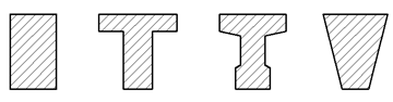 а – прямоугольное; б – тавровое; в – двутавровое; трапециевидное.
