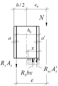 Неизвестную высоту сжатой зоны бетона находят из уравнения равенства нулю суммы проекций всех нормальных усилий на продольную ось элемента: