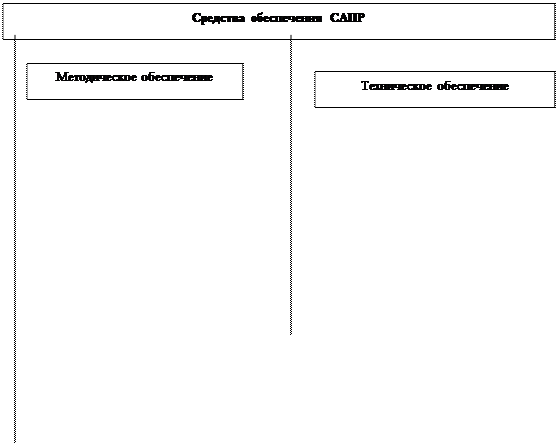 САПР – сложная организационно-техническая система, представляющая собой комплекс средств автоматизации (КСА), организационно-методических и технических документов и специалистов, использующих их в процессе своей профессиональной деятельности. Согласно нормативному документу, по информационной технологии в процессе автоматизированного проектирования разрабатываются следующие виды обеспечения: техническое, программное, информационное, организационно-методическое, метрологическое, правовое, математическое, лингвистическое, эргономическое.