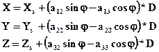 Эти координаты можно выразить через соответствующие координаты в системе координат радиолокационной системы: