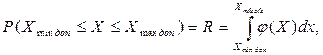 где R — надежность, т. е. вероятность нахождения случайной величины X в допустимых пределах Хmin доп, Хmax доп — минимально допустимом и максимально допустимом.
