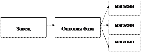 Рассмотрим пример логистической оптимизации процесса доведения сахарного песка от завода-изготовителя до магазина розничной торговли. Участниками товародвижения сахарного песка являются: завод-изготовитель, оптовая база и сеть продовольственных магазинов (рис1.2.).