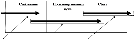 Задачи производственной логистики связаны с управлением материальным потоком внутри предприятия, создающего материальные блага или оказывающего услуги. Специфика этого этапа состоит в том, что основной объем работ по проведению потока выполняется в пределах территории одного предприятия. Участники логистического процесса при этом, как правило, не вступают в товарно-денежные отношения. Поток идет не в результате заключенных договоров, а в результате решений, принимаемых системой управления предприятием.