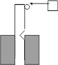 Рис.1. Схема испытаний образцов на удар при двухопорном нагружении. (Образец с прямоугольным надрезом.)