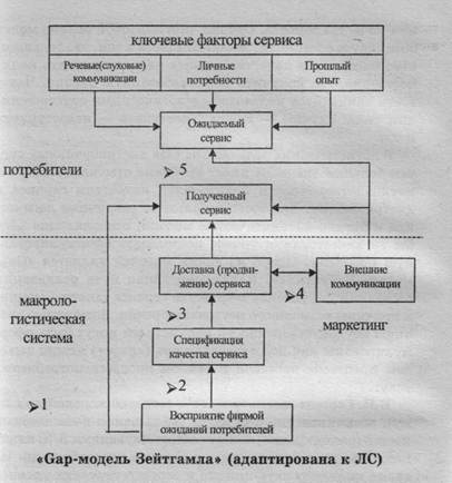 Таким образом, рассмотренная «Gap-модель Зейтгамла» позволяет определить «узкие» места в логистической цепи «производство —дистрибьюция — покупатель» и ориентировать логистический персонал на принятие правильных решении по оценке и управлению качеством сервиса в интегрированной ЛС.