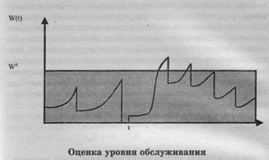 Данная точка определяет норматив WN, в пределах которого обеспечивается своевременное обслуживание, а за его пределами — нарушение срока доставки. За точкой Т?2 продолжение функции (кривая АВ на рис.) отражает предполагаемый характер потерь в системе от несвоевременного обслуживания (и строится для возможности получения на ЭВМ некоторого приемлемого решения в случае выхода значений ФСП в нерабочую область).