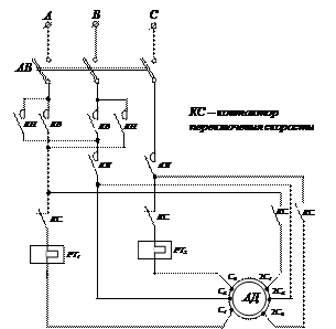 В момент пуска КС включается через контакты РВ, в (.) С. РВ обесточивается, отключая контактор КС.