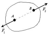 Аксиома о равновесии двух сил. Если на свободное абсолютно твердое тело действуют две силы, то тело может находиться в равновесии тогда и только тогда, когда эти силы равны по величине и направлены вдоль одной прямой в противоположные стороны.