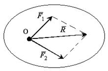 Аксиома параллелограмма сил. Две силы, приложенные к телу в одной точке, имеют равнодействующую, приложенную в той же точке и равную по величине и направлению диагонали параллелограмма, построенного на этих силах, как на сторонах.