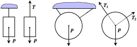 ). Гиря становится свободным твердым телом на которое действуют две силы и при этом оно находится в покое. Согласно аксиоме о равновесии двух сил, силы