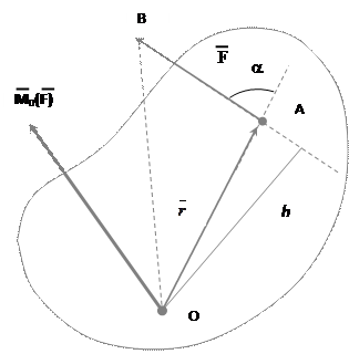 , приложенную к телу в точке А. Из некоторой точки О опустим перпендикуляр на линию действия силы
