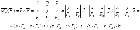 точки приложения этой силы, то момент силы относительно начала координат вычисляется следующим образом: