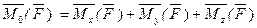 декартовы оси координат x, y, z. Момент силы относительно точки можно представить в виде суммы трех векторов