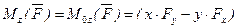точки приложения этой силы, относительно осей координат, то моменты силы относительно осей координат вычисляется следующим образом: