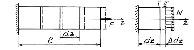 . Т.к. сечения I и II элемента параллельны, в силу гипотезы плоских сечений, то во всех его точках удлинения