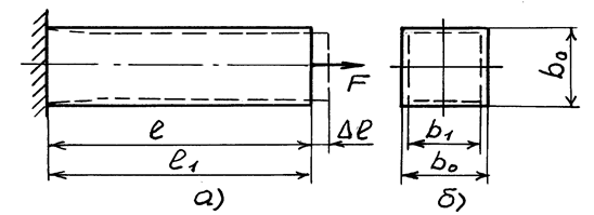 При растяжении (или сжатии) бруса меняются и его поперечные размеры. Из рис. 4.5, б абсолютное сужение бруса: