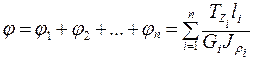 Если стержень (вал) имеет несколько участков одинакового диаметра и нагружен рядом крутящих моментов, то полный угол закручивания будет равен алгебраической сумме углов закручивания каждого участка, т.е.