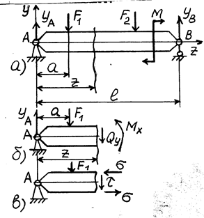 Рассмотрим прямой поперечный изгиб двухопорной балки