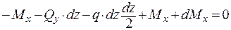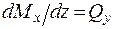 из второго уравнения, т.е. первая производная от изгибающего момента по длине балки равна поперечной силе.