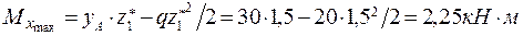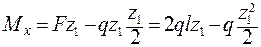 ; она приложена посредине этого отрезка и поэтому момент её отнсительно сечения
