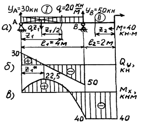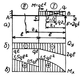 Разбиваем балку на cиловые участки I и II; составляем выражения для