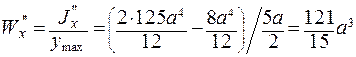 Изменим форму сечения, сохранив его первоначальную площадь (рис. 8.7,в). Вычислим осевые моменты сопротивления до и после изменения формы поперечного сечения: