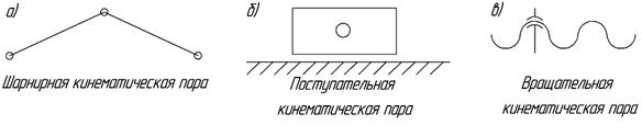 Кинематической парой называется соединение двух соприкасающихся звеньев, допускающее их относительное движение (рис. 3.1 а, б, в).